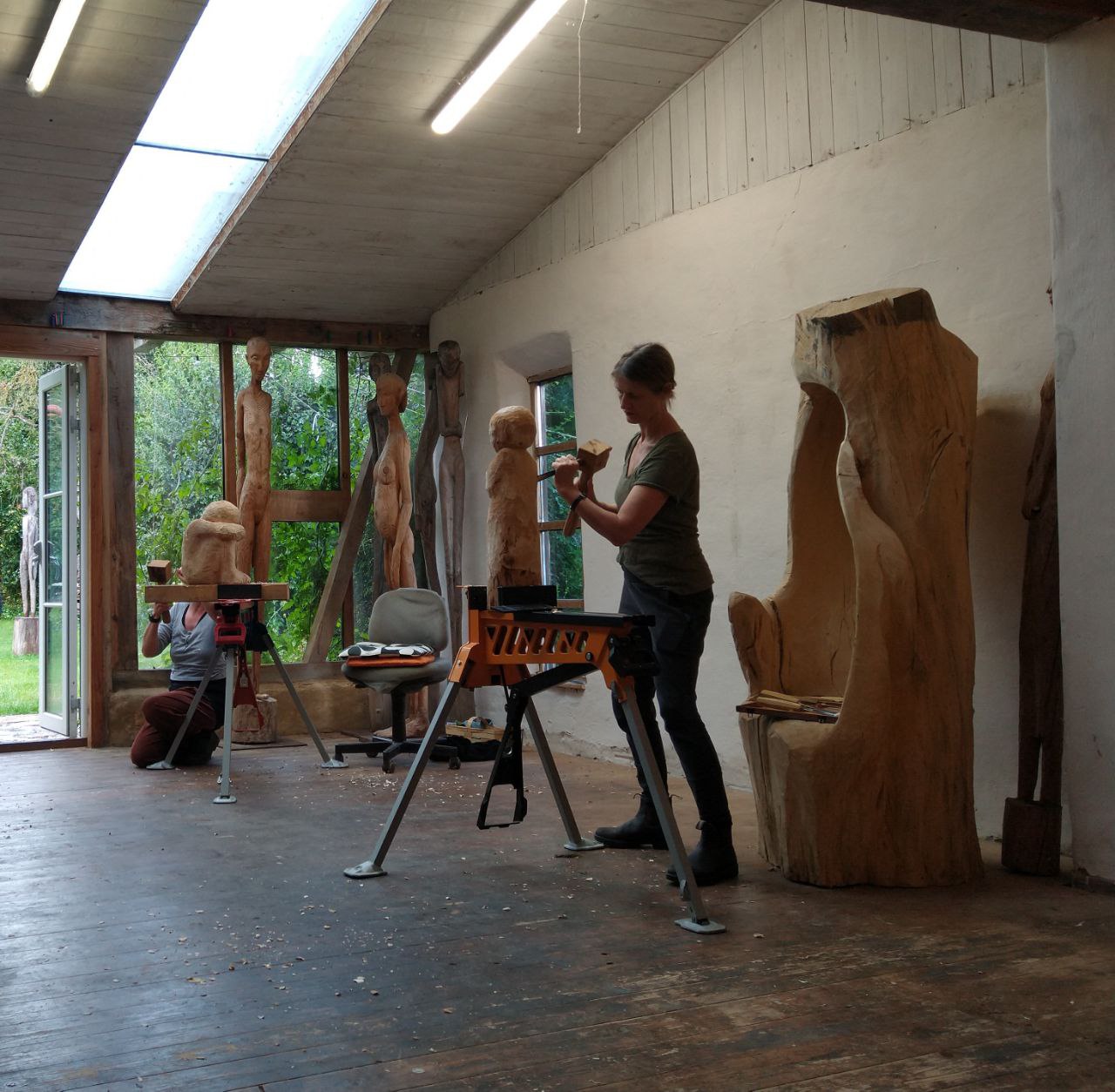 Seid 2021 finden im Sommer regelmäßig Bilhauerseminare im Atelier und Garten in Wietzow statt.Eine ganze Woche Zeit um ganz im Holz und im künstlerischen Schaffen einzutauchen. In der täglichen Verbindung mit Yoga klingt das eigene Körpergefühl und die innere Ruhe für das Wirken wird befördert.